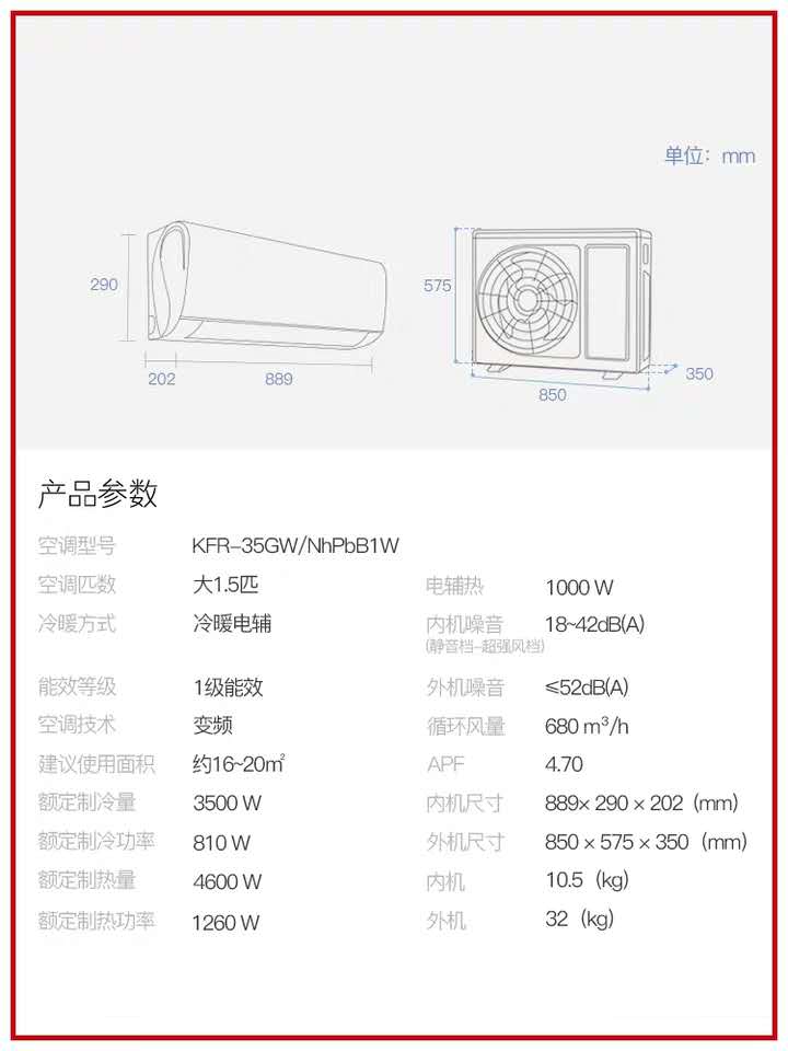 產(chǎn)品型號(hào) | SEER | APF | 適用面積㎡ | 產(chǎn)品尺寸(室內(nèi)/外) (mm) | ||